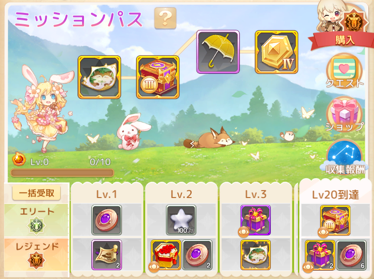 - レジェンドパスは「エリートパス」のレベルが上がった状態でも購入が可能です。購入時、すでに到達した分の報酬を受け取れます。