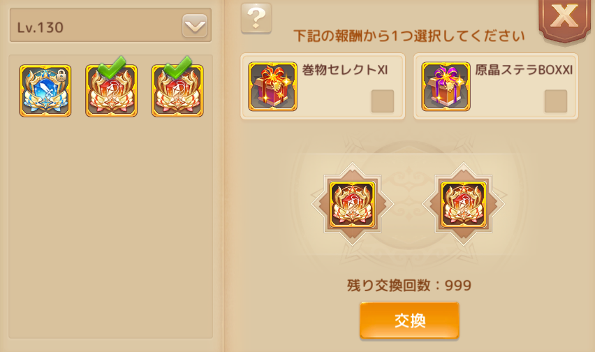 証交換において、装備の証をサーバーレベルに応じて、装備の証・超と装備の証・暁が交換可能になりました。