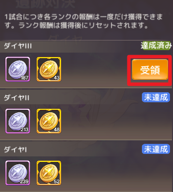 今回のアップデートより、「遺跡対決」の報酬を手動でお受け取りいただく方式に変更いたしました。