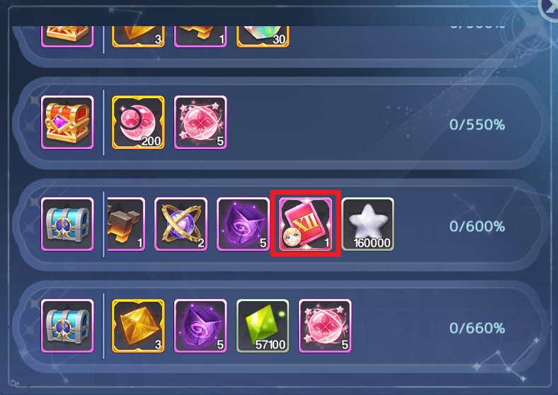 ステラBOX | 開くと、「ステラ×500万」「ステラ×40万」「ステラ×20万」「ステラ×10万」「ステラ×8万」「ステラ×4万」「ステラ×1万」の中からランダムに一つ獲得できます。 |