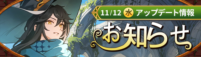 【11月13日14:33追記】11/12(水)アップデート情報!