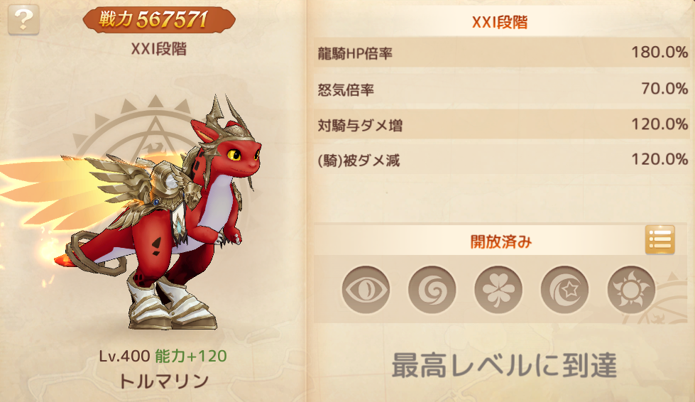 また、レベル135以上のキャラクターに対して、龍騎の騎手レベル上限は最大「伝世の騎手Lv.50」まで開放いたしました。