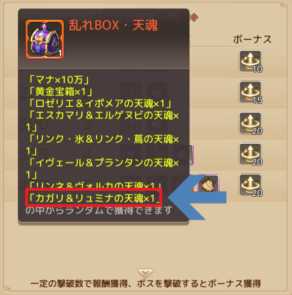 今回のアップデートにて、サーバーレベル135以上のキャラクターに対し、累計撃破報酬の「乱れBOX・天魂」に「カガリ&リュミナの天魂」が追加されます。