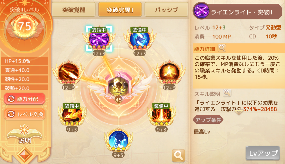 また、突破覚醒Ⅱにおいて、各スキルに設置できる能力があります。能力を設置することで、職業スキルに特定の効果を与えられます。