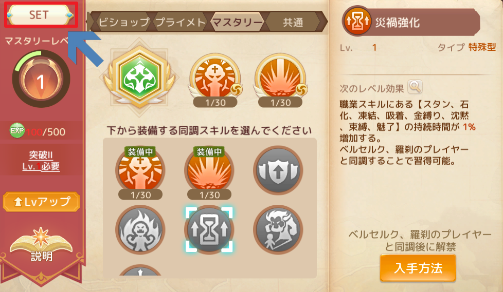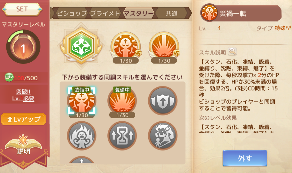今回のアップデートより、スキルシステムにて「マスタリー」を追加いたしました。マスタリースキルには、「職業固有スキル」および「同調スキル」二種類があります。