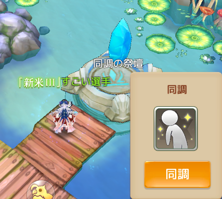 フレンドのファームにある同調の祭壇で同調すると、マスタリーEXPが獲得できます。ペットのエサやりも同時に行われますが、1人のフレンドにつき、エサやりは1日1回まで可能です。