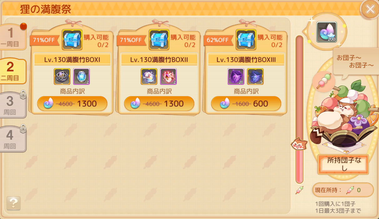 全サーバーのプレイヤーと協力して、ラクームを満腹にさせよう!期間中、イベント画面での無料受取や、「限定BOX」の購入で「団子」を集めることができます。