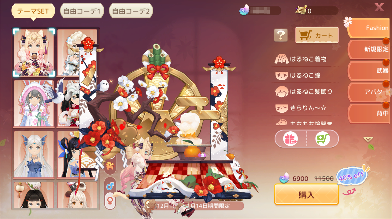 あの人気アバターが帰ってきました!超特価でアバターを購入できます!更に、今回は新たなアバター「雪狐シリーズ」「はるねこシリーズ」が登場します!また、オンライン中のフレンドに購入したアバターをプレゼントすることが可能です。このチャンスをぜひお見逃しなく!