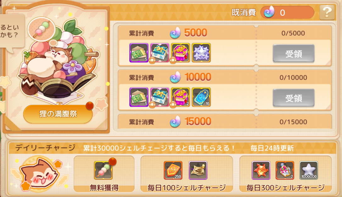 累計3万シェルをチャージすると、毎日チャージをせずに「デイリーチャージ報酬」を受け取ることができます!
