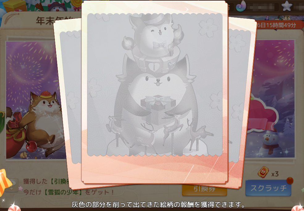 期間限定イベント「スクラッチ」を開催いたします。 「引換券クエスト」を達成すると獲得できる「引換券」で「スクラッチ」を削ることができます。スクラッチから限定アイコン「雪狐の少年」や周年金貨などのアイテムを獲得できます。